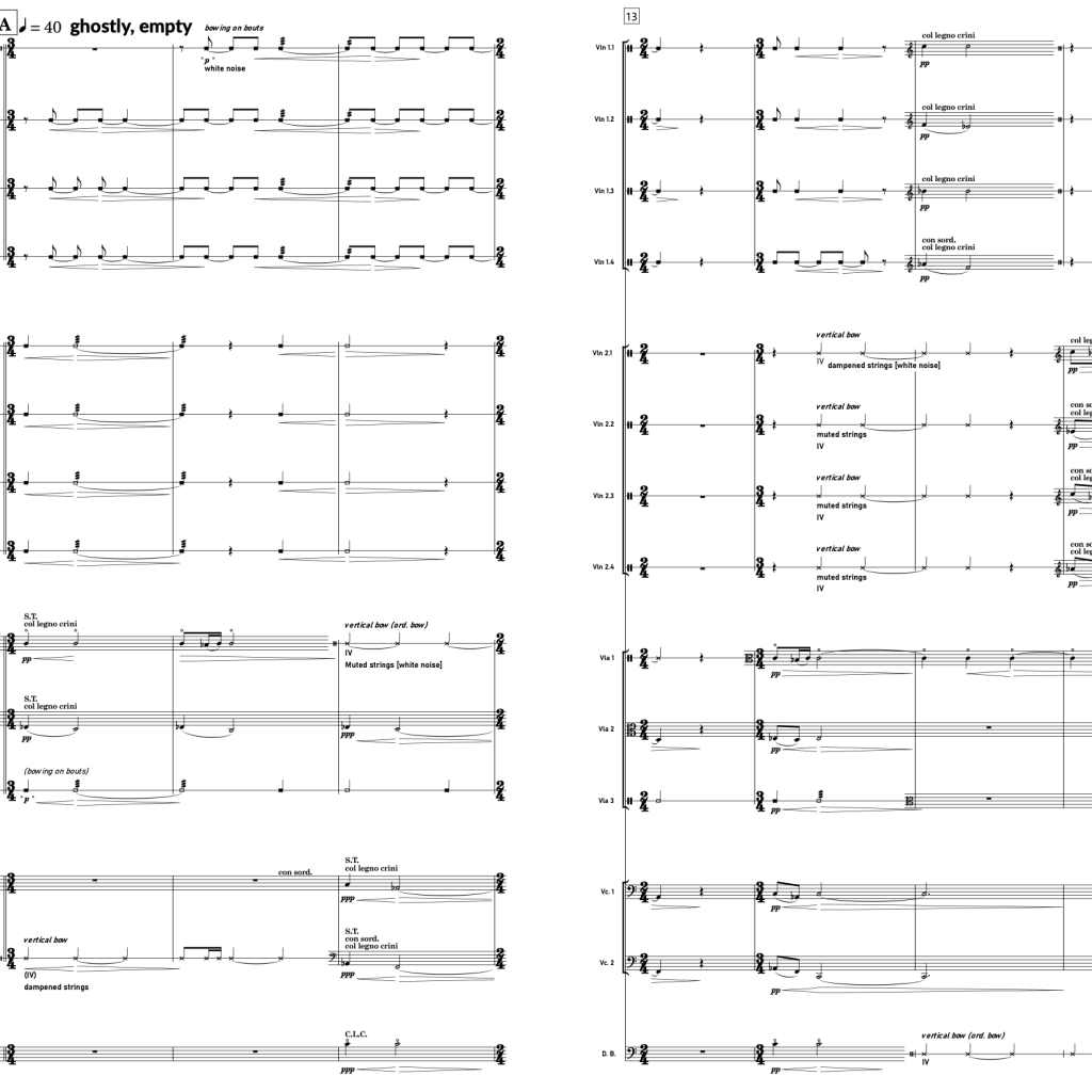 fragment / fragment is a piece for string orchestra that was made exploring a paraphrasing technique. The piece is based on ‘fragments’, a short piano piece by Sergei Rachmaninov, in the year 1917. Melodic and harmonic themes are varied and distorted throughout three movements: